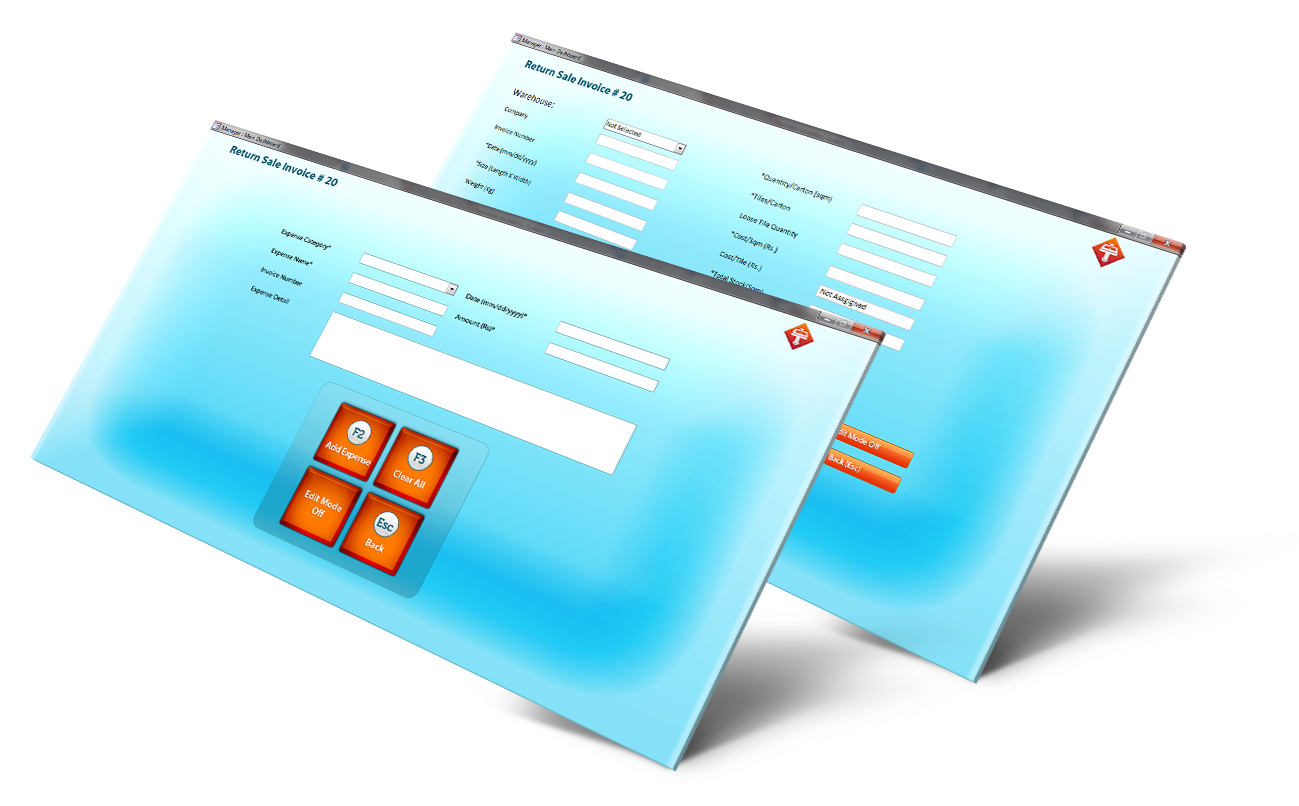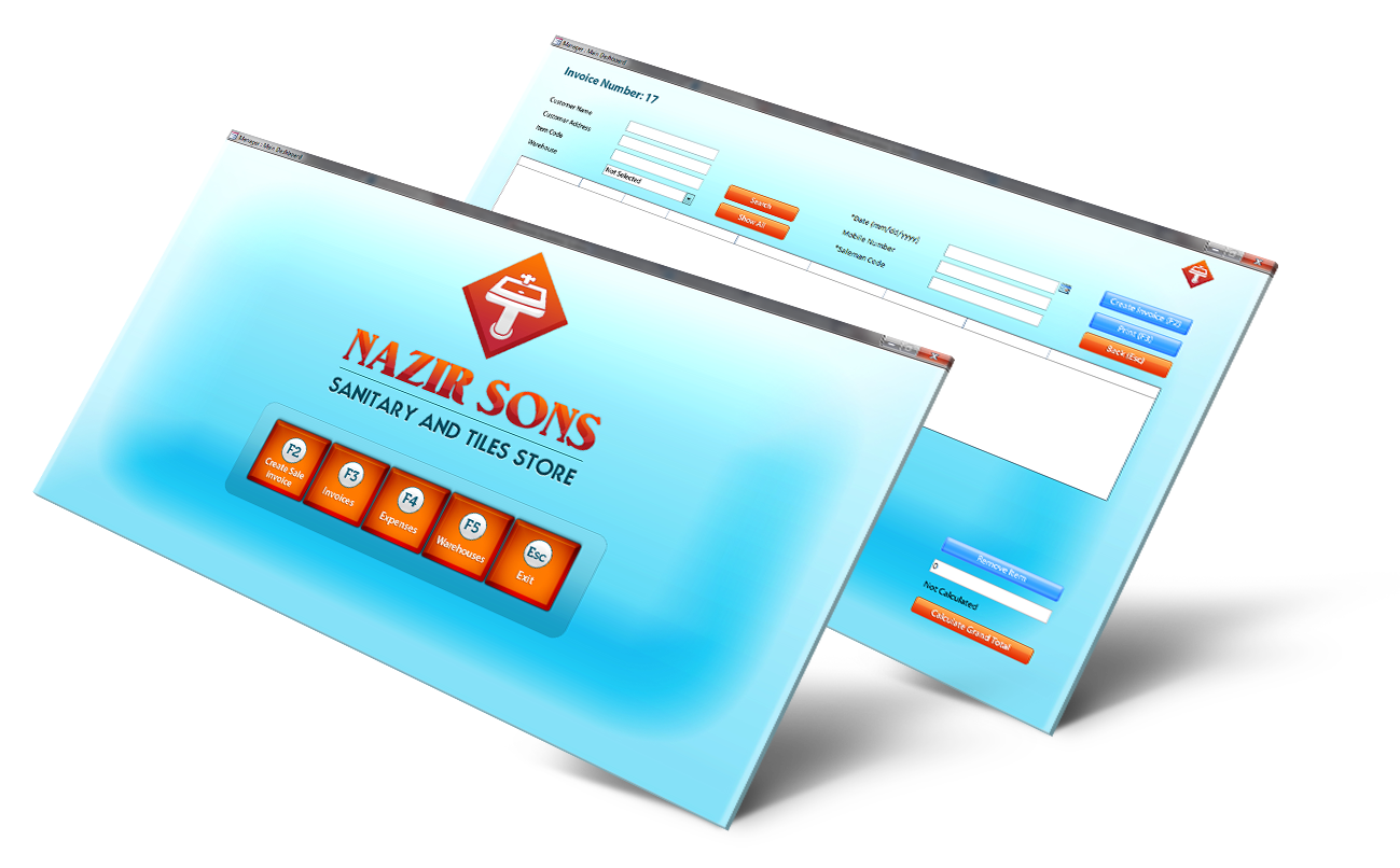 This app was built for Desktop. It is an inventory management system that allows the client to manage inventory of their tiles and sanitary products