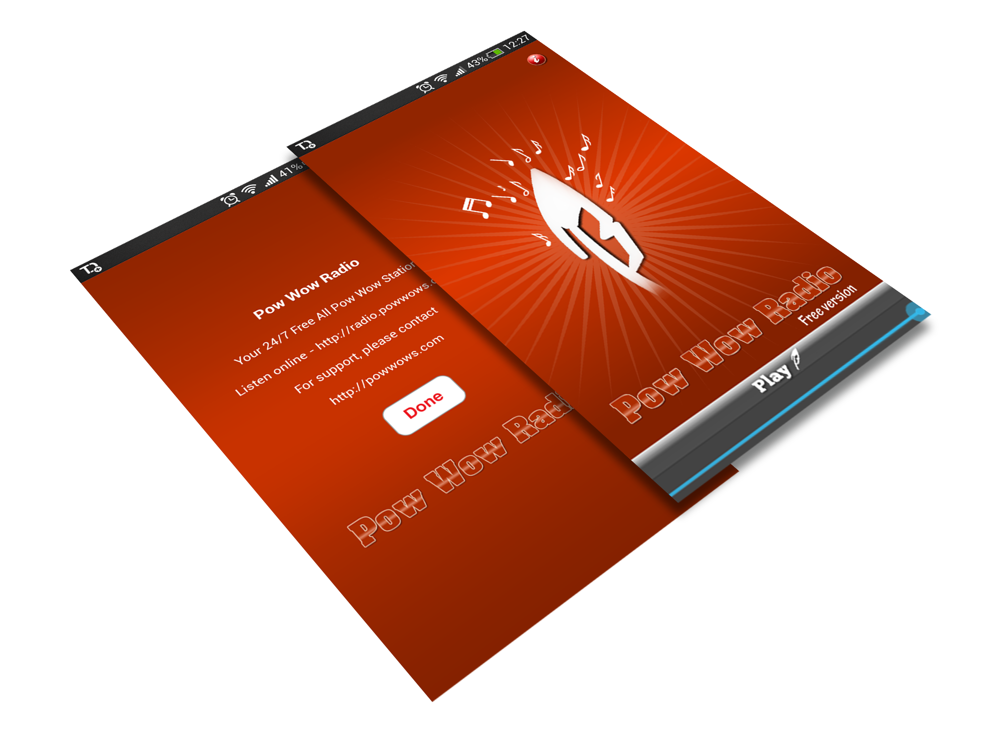 It is an android app. It connects the user with the PowWow online radio station. The online radio station provides a collection of around 2000 Native American PowWow songs from various artists.