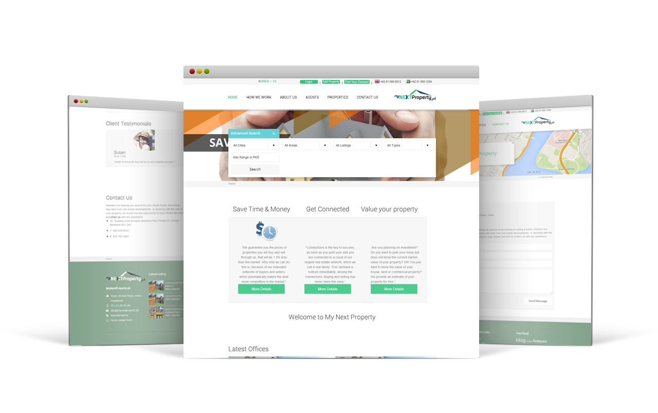 This website is developed for a real estate company, My Next Property. It provides property listing with details of properties including photos.