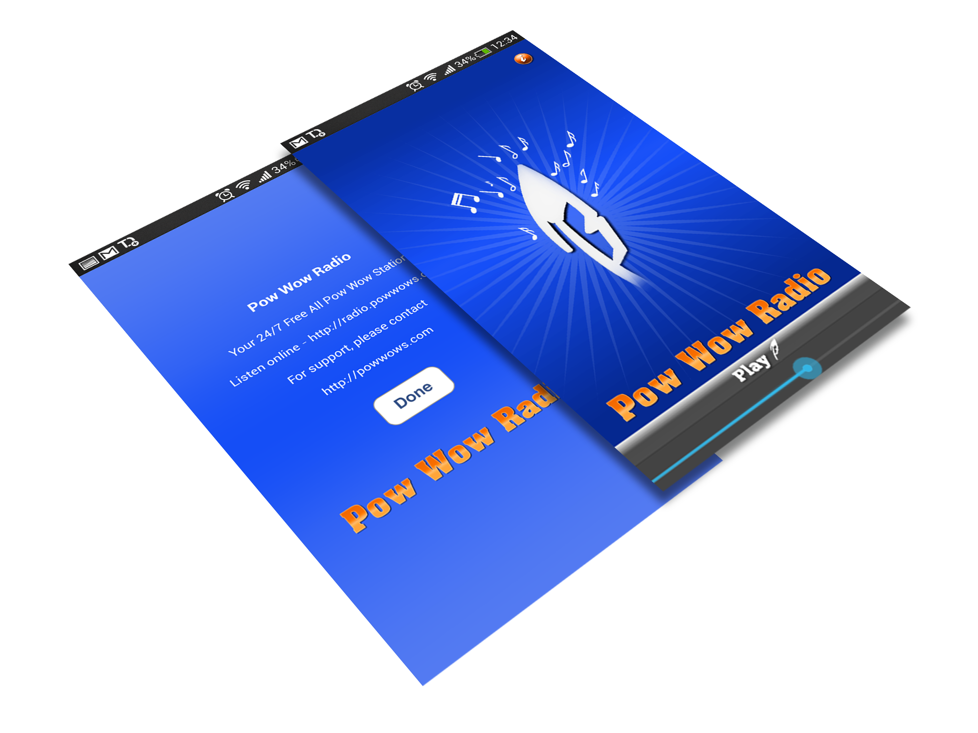 It is an android app. It connects the user with the PowWow online radio station. The online radio station provides a collection of around 2000 Native American PowWow songs from various artists.